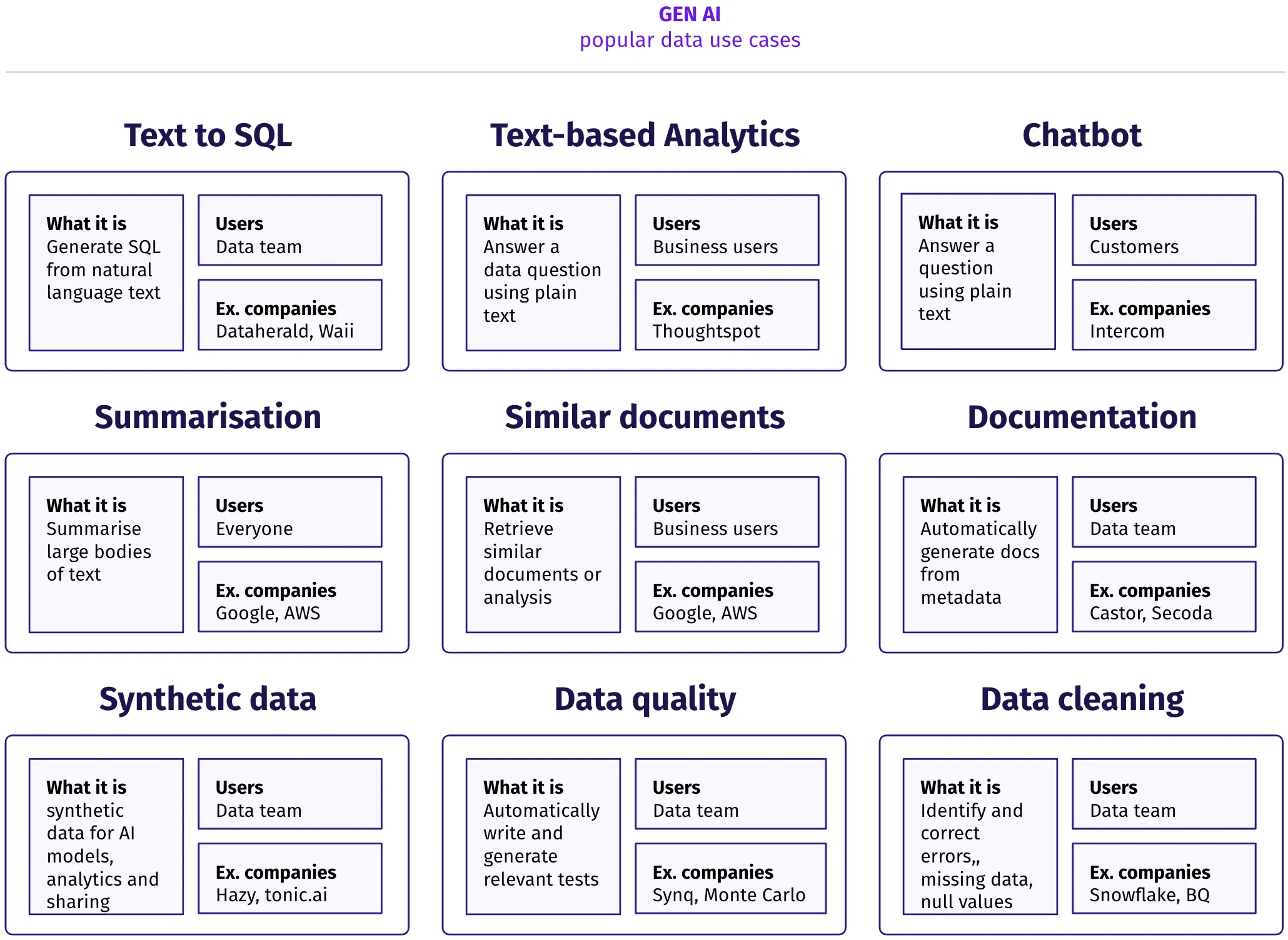 Below are some of the most popular Gen AI use cases we’ve seen for data teams.