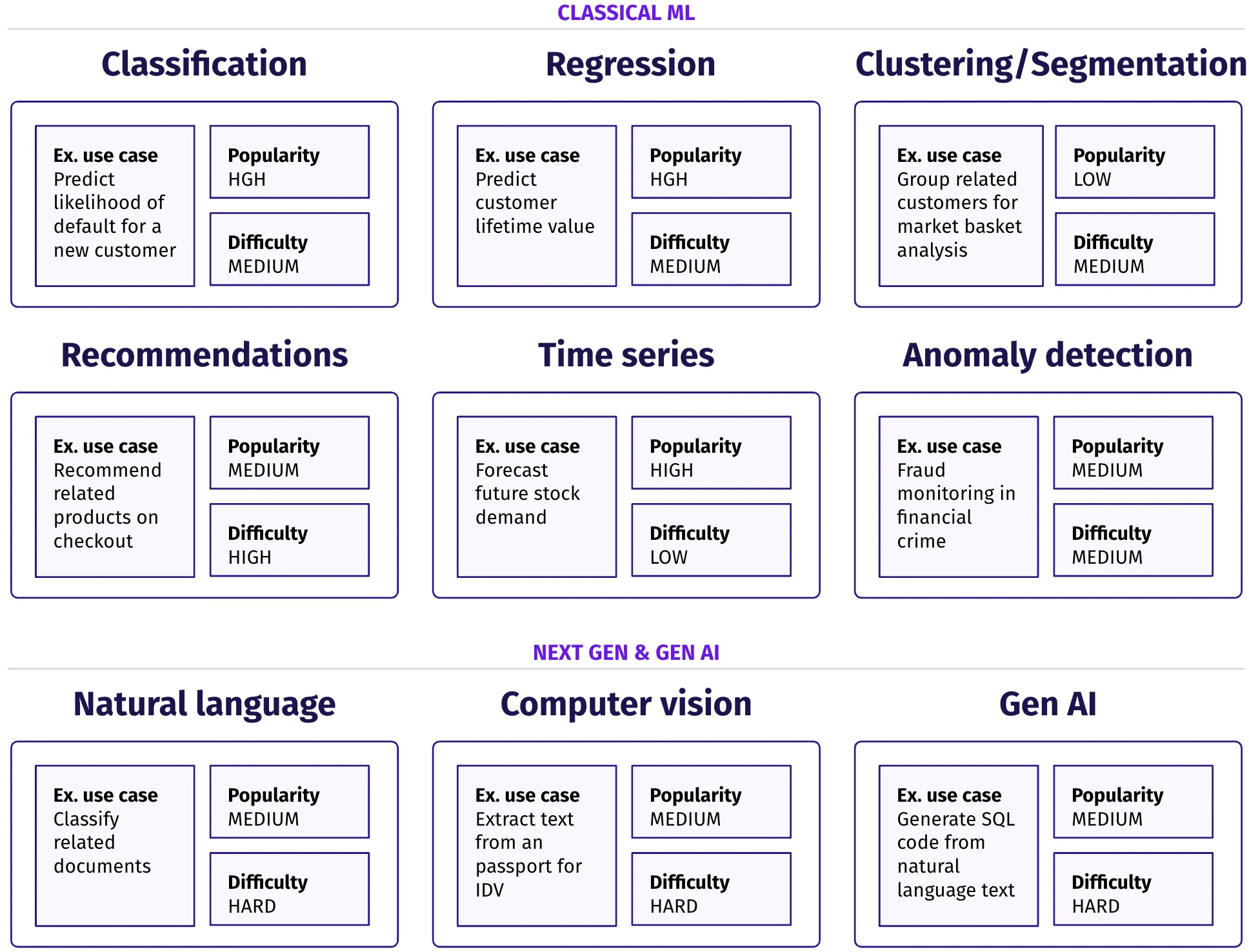 Although it may not seem so, ML and AI have existed for decades. While Gen AI models may be best suited for cutting-edge use cases such as generating SQL code from text or automatically answering business questions, more proven methods such as classification and regression models serve a purpose, too.